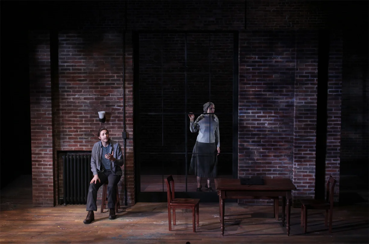 "Brittany Vasta’s minimalist brick set subtly enhances the play, utilizing a sliding wall of windows that allow the audience to be both the insider looking out, and the outsider looking in. As with art, the windows at times reflect reality, capturing a mirror image of the action on stage. They offer an alternate perspective, as well as providing the inspiration for Asher’s heretical painting at the end of the play." -- Portland Press Herald
